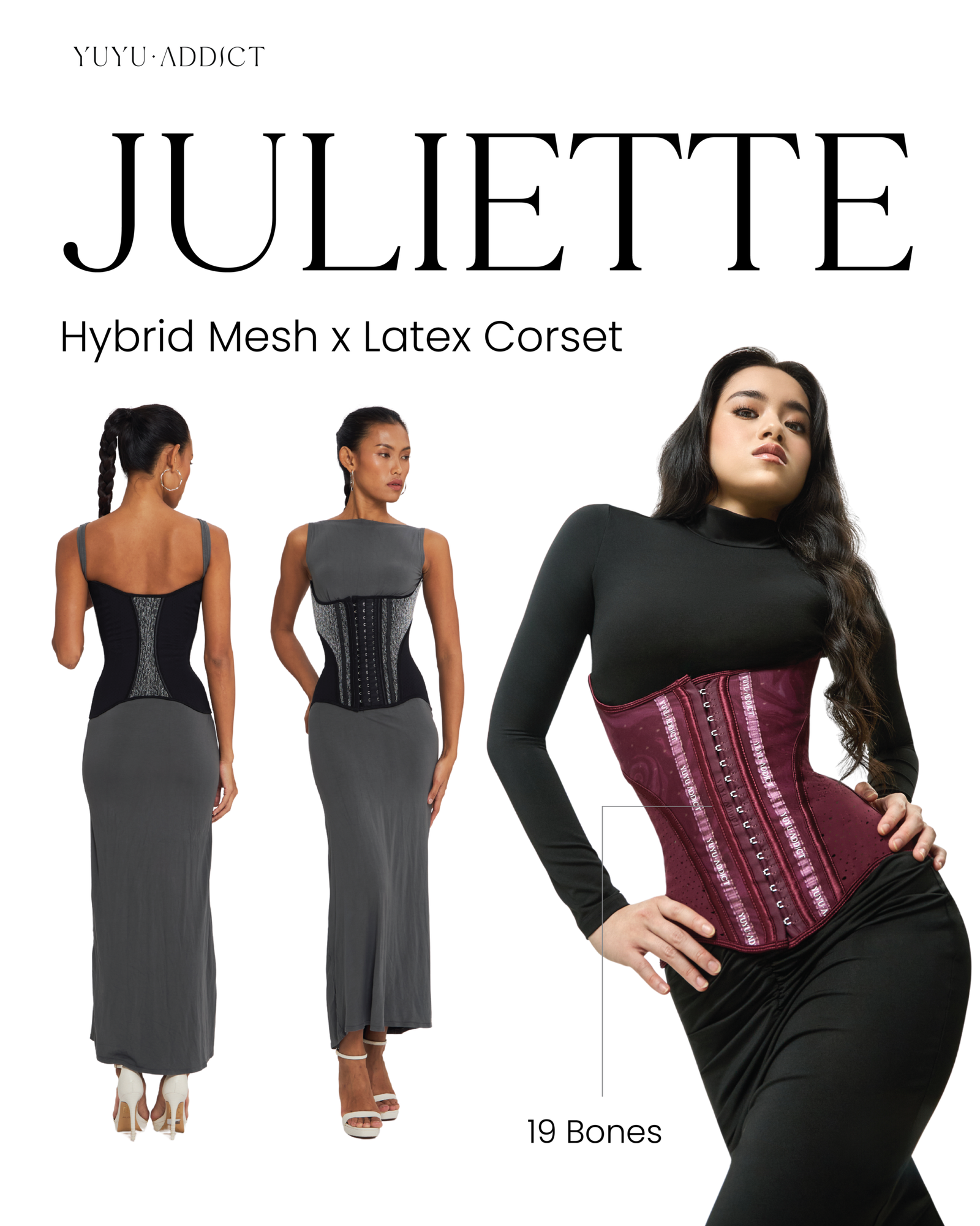 – Juliette Marron dan Black berbahan Hybrid! Perpaduan latex premium + mesh = shaping maksimal TANPA gerah